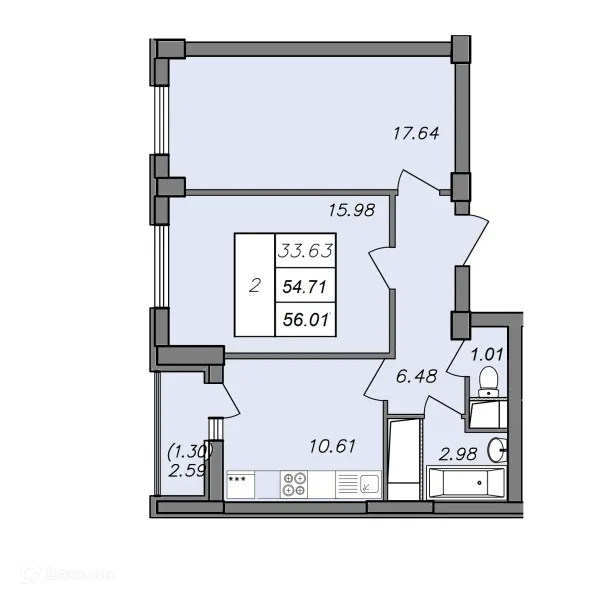 2 комн. квартира в Воронеже в ипотеку от 71 710 руб/месяц