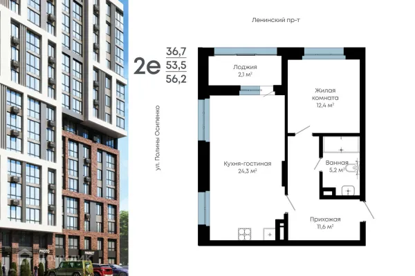 1 комн. квартира в Воронеже в ипотеку от 48 516 руб/месяц