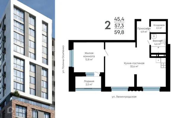 1 комн. квартира в Воронеже в ипотеку от 51 577 руб/месяц