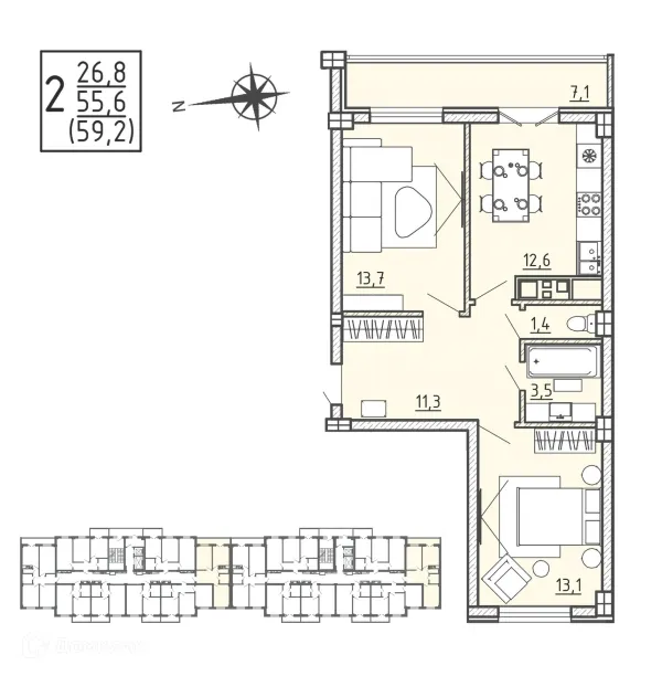 2 комн. квартира в Воронеже в ипотеку от 60 632 руб/месяц