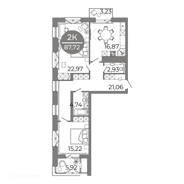 2 комн. квартира в Воронеже в ипотеку от 92 525 руб/месяц