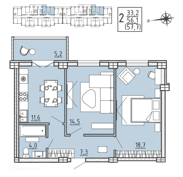 2 комн. квартира в Воронеже в ипотеку от 65 125 руб/месяц
