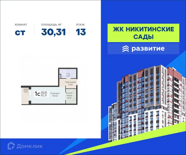 Студия квартира в Воронеже в ипотеку от 48 777 руб/месяц