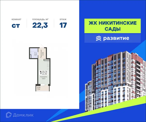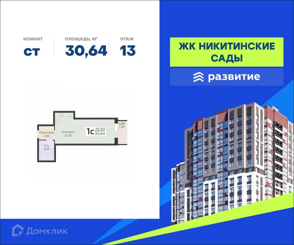 Студия квартира в Воронеже в ипотеку от 22 919 руб/месяц
