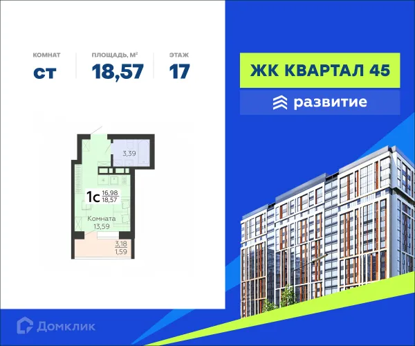 Студия квартира в Воронеже в ипотеку от 19 478 руб/месяц