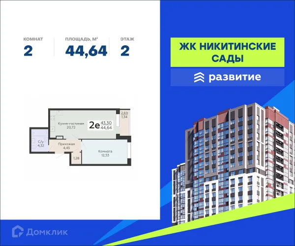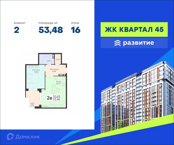 2 комн. квартира в Воронеже в ипотеку от 53 349 руб/месяц