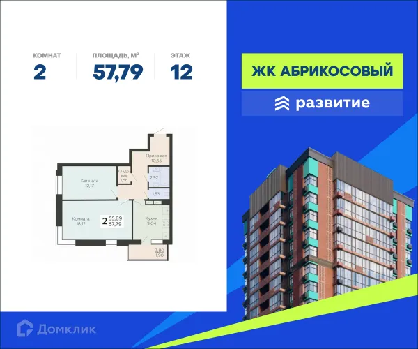 2 комн. квартира в Воронеже в ипотеку от 37 580 руб/месяц